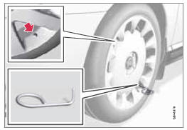 L'oeillet de remorquage doit être vissé à fond sur la clé à boulon de roue.