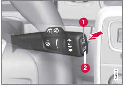 Si la marche arrière est engagée lorsque les essuie-glaces de pare-brise sont activés, l'essuie- glace de lunette arrière passera en balayage intermittent2. La fonction est désactivée en quittant la marche arrière.