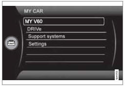 Toutes les fonctions réglables du groupe de menu my car peuvent y être activées, ajustée ou désactivées. Ci-dessous ainsi que dans les pages suivantes sont listés les menus principaux/ fonctions avec les sous-menus/options possibles. Pour plus d'informations sur chaque fonction - voir les renvois de page.