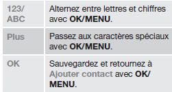 Les modifications apportées depuis la voiture à un contact du répertoire du téléphone mobile entraîneront la création d'un nouveau contact dans le répertoire du téléphone de la voiture, c'est-à-dire que la modification ne sera pas sauvegardée dans le téléphone mobile. Dans la voiture, il y aura un double contacts avec des icônes différentes.