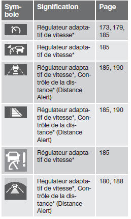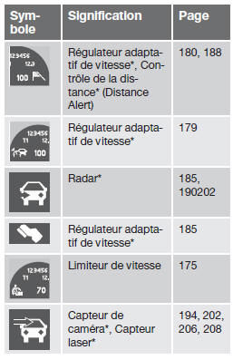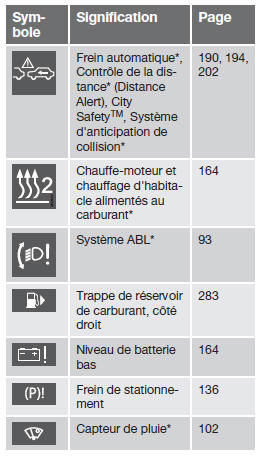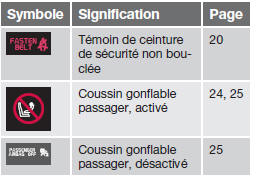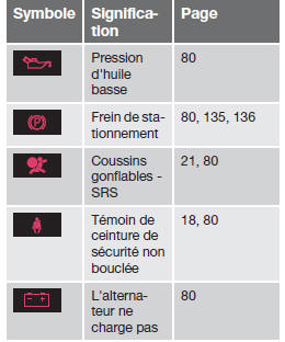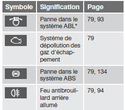 Témoins d'avertissement et de contrôle sur le combiné d'instruments