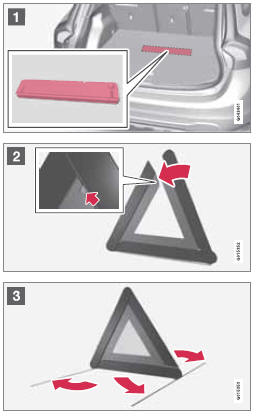 Veillez à ce que le triangle de présignalisation, avec son étui, soit bien en place dans le compartiment à bagages après utilisation.