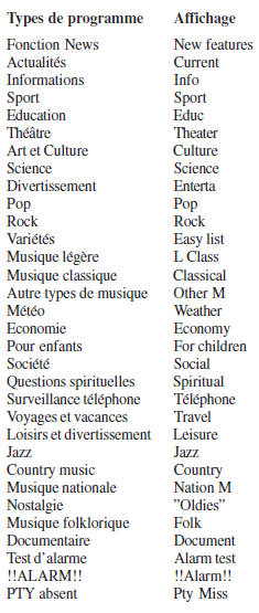 La fonction pty vous permet de sélectionner directement le type de sujet contenu dans le programme radiodiffusé. Pour rechercher un certain type de programme, procédez de la manière suivante: